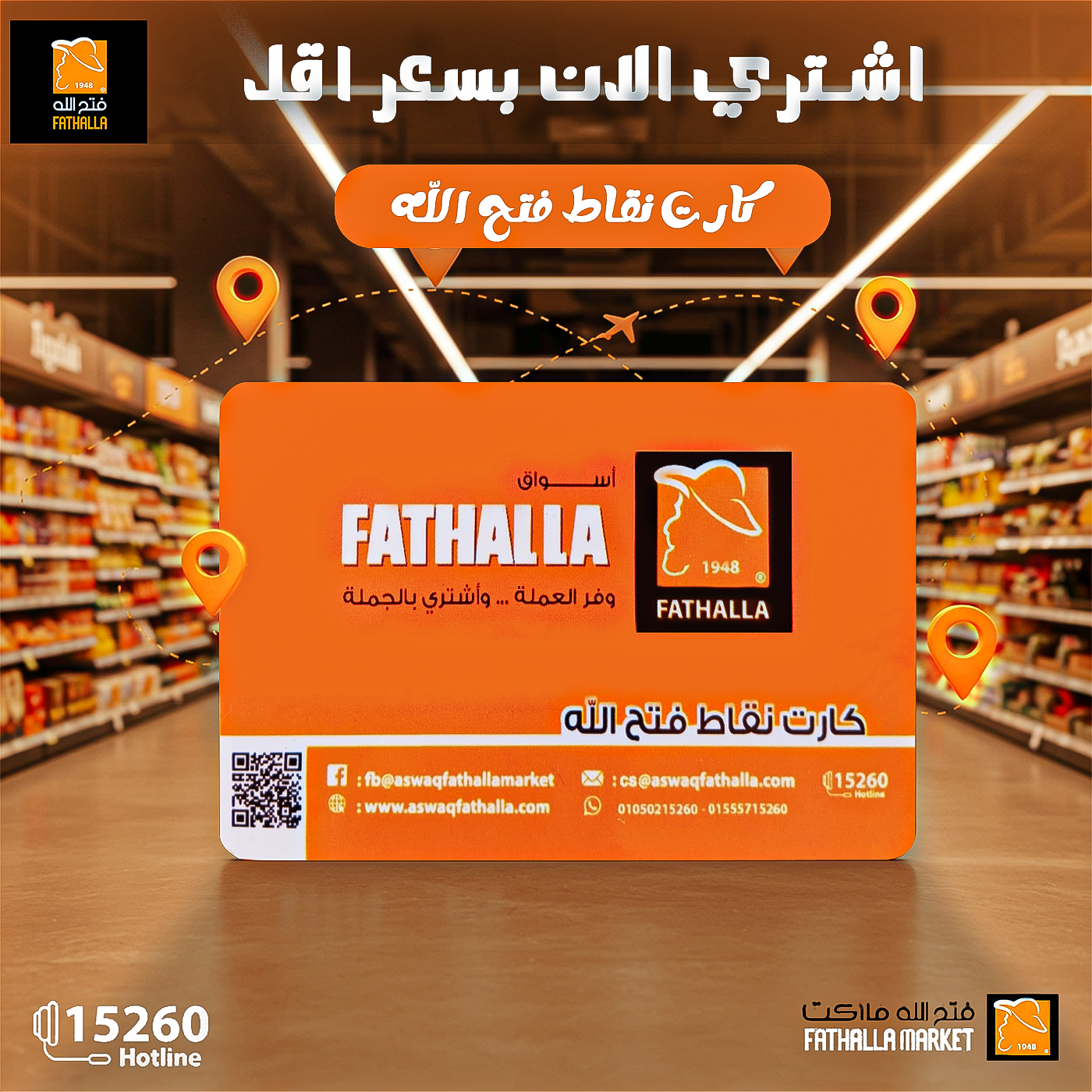 A design that expresses the importance of owning a Fatah Allah points card to obtain permanent discounts.